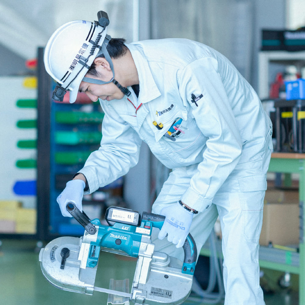 明晃電機では一緒に働く仲間を募集しています。制御盤や自動制御システムの製作・施工、計装工事・電気工事など、弊社の業務に興味がある方は、ぜひご応募ください。